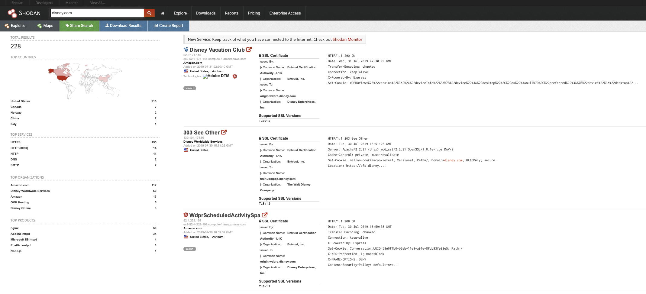 Shodan is a an amazing internet scanner which essentially scans everything internet facing. I’d definitely recommend spending some time Shodan surfing and searching for internet facing infrastructure related to your environment. There’s also a ton of search terms similar to google dorking for better searches as well.