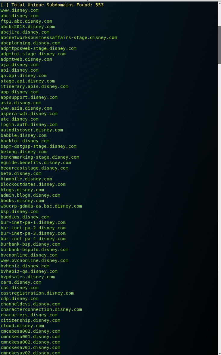 Sublist3r has been my subdomain enumeration tool for the longest time and is definitely my go-to. I definitely recommend leveraging this tool as a defender to get a better view of all the subdomains your organization might own. It’s completely passive so you’re not going to take out production systems either.
