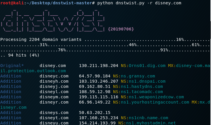 DNStwist is also another fun tool I use in my day job. This tool allows you to find phishing sites, typosquatting or fraudulent/knockoff sites!